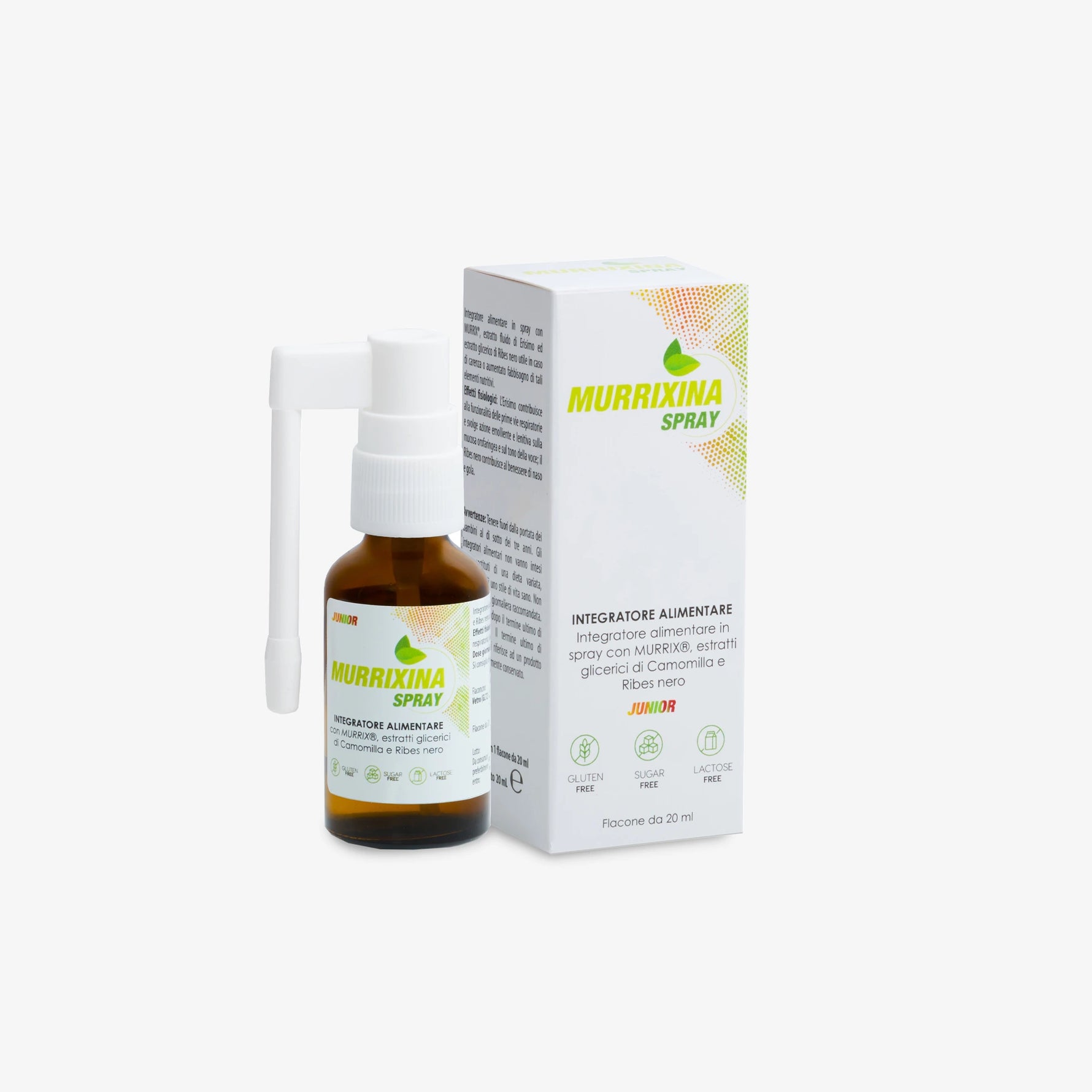 🛡️ Approccio naturale contro il mal di gola dei più piccoli: se i tuoi bambini soffrono spesso di mal di gola, faringiti o tonsilliti, soprattutto nei mesi freddi o primaverili che sono virali nell’asilo/scuola, MURRIXINA SPRAY JUNIOR è la risposta naturale e mirata. Grazie al complesso brevettato MURRIX®, agisce in modo specifico anche contro lo Streptococcus pyogenes, una delle principali cause di infezioni ricorrenti nella fascia pediatrica.