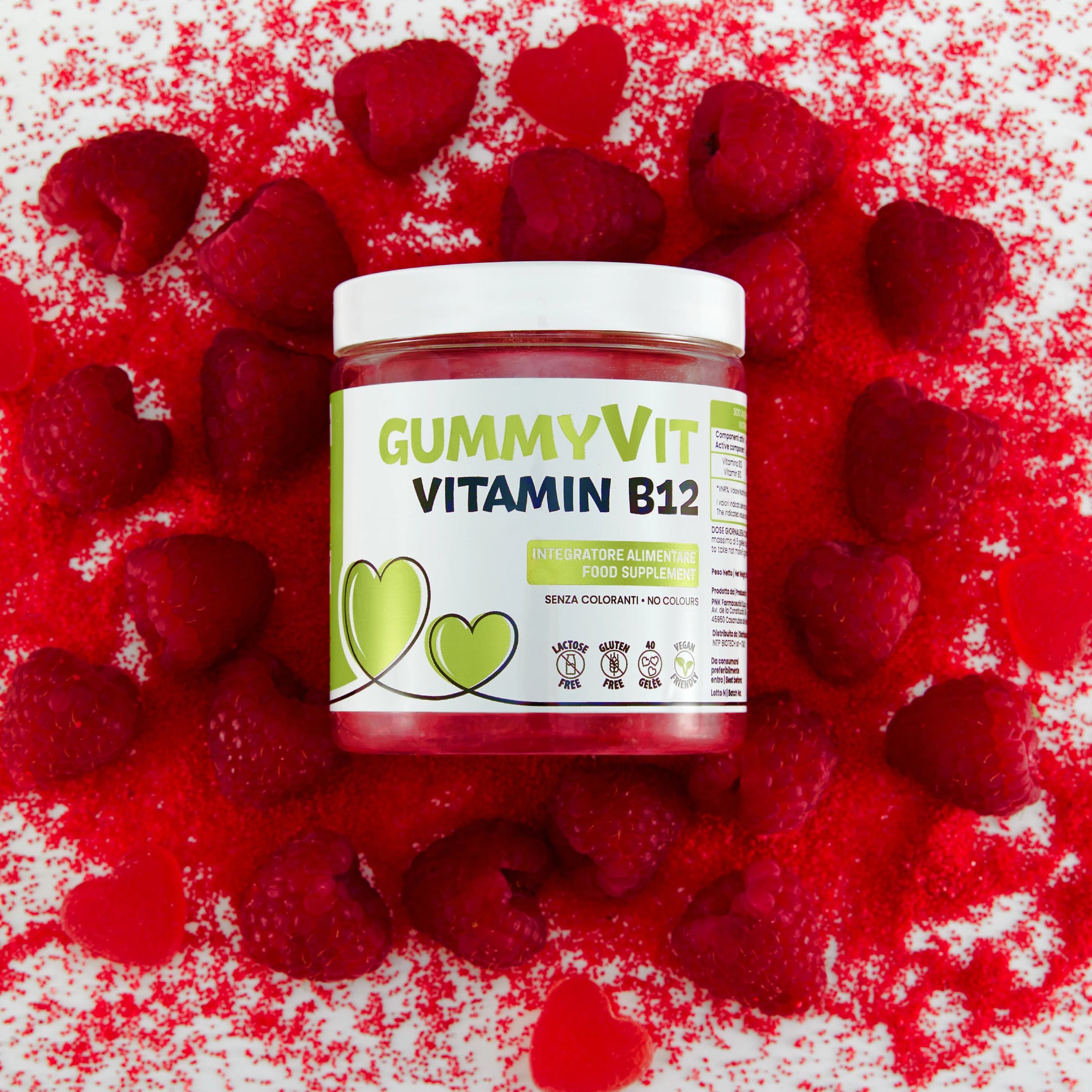 Le sue proprietà lo rendono una soluzione naturale per chiunque voglia ottenere il giusto supporto di Vitamina B-12. Inoltre, le 40 caramelle a forma di cuore, presenti in ogni barattolo, vengono prodotte utilizzando pectina vegetale, al contrario di altre gommose che sono a base di gelatina animale. Questo lo rende una scelta ideale per chi segue una dieta vegetariana o che non ama il consumo di alimenti di origine animali.
