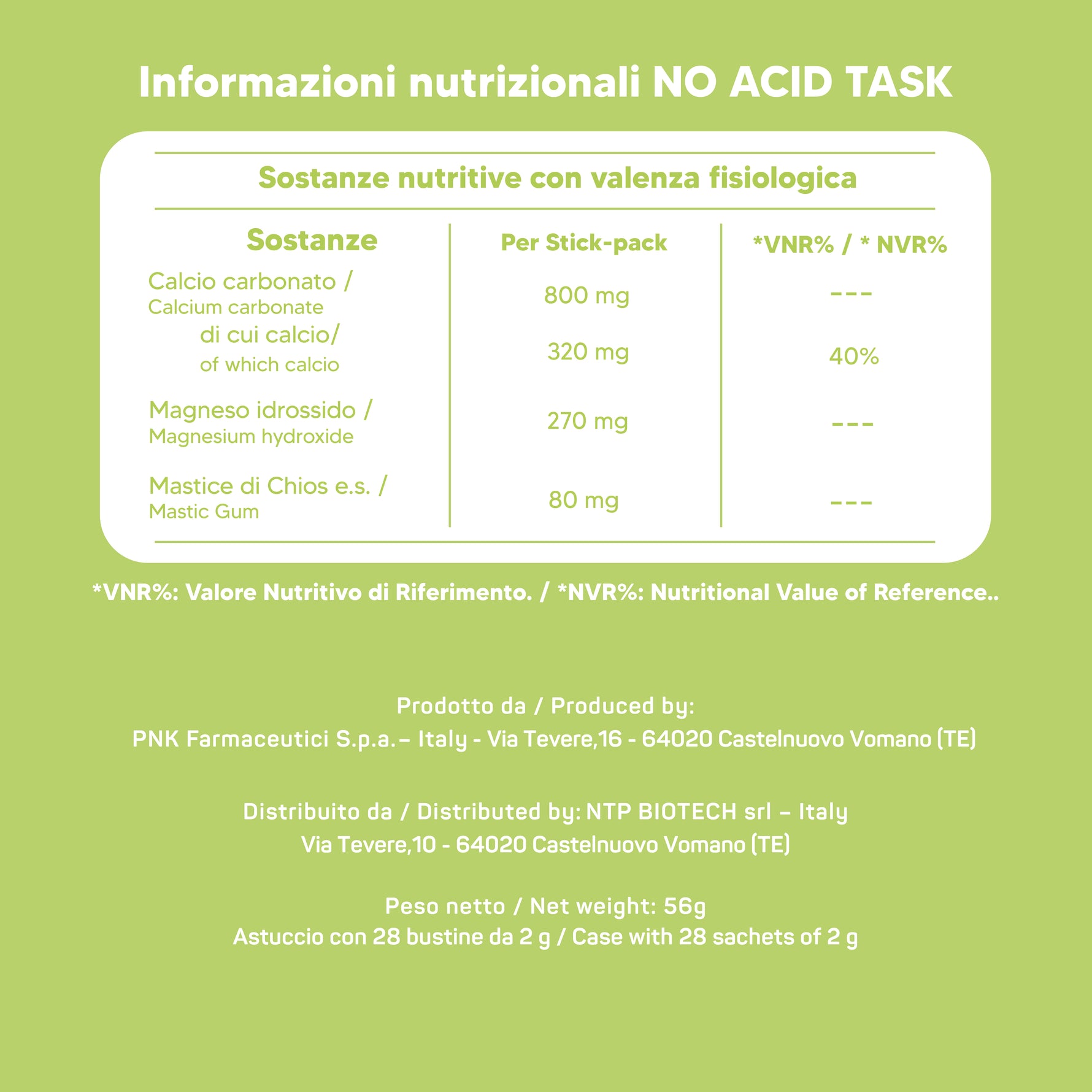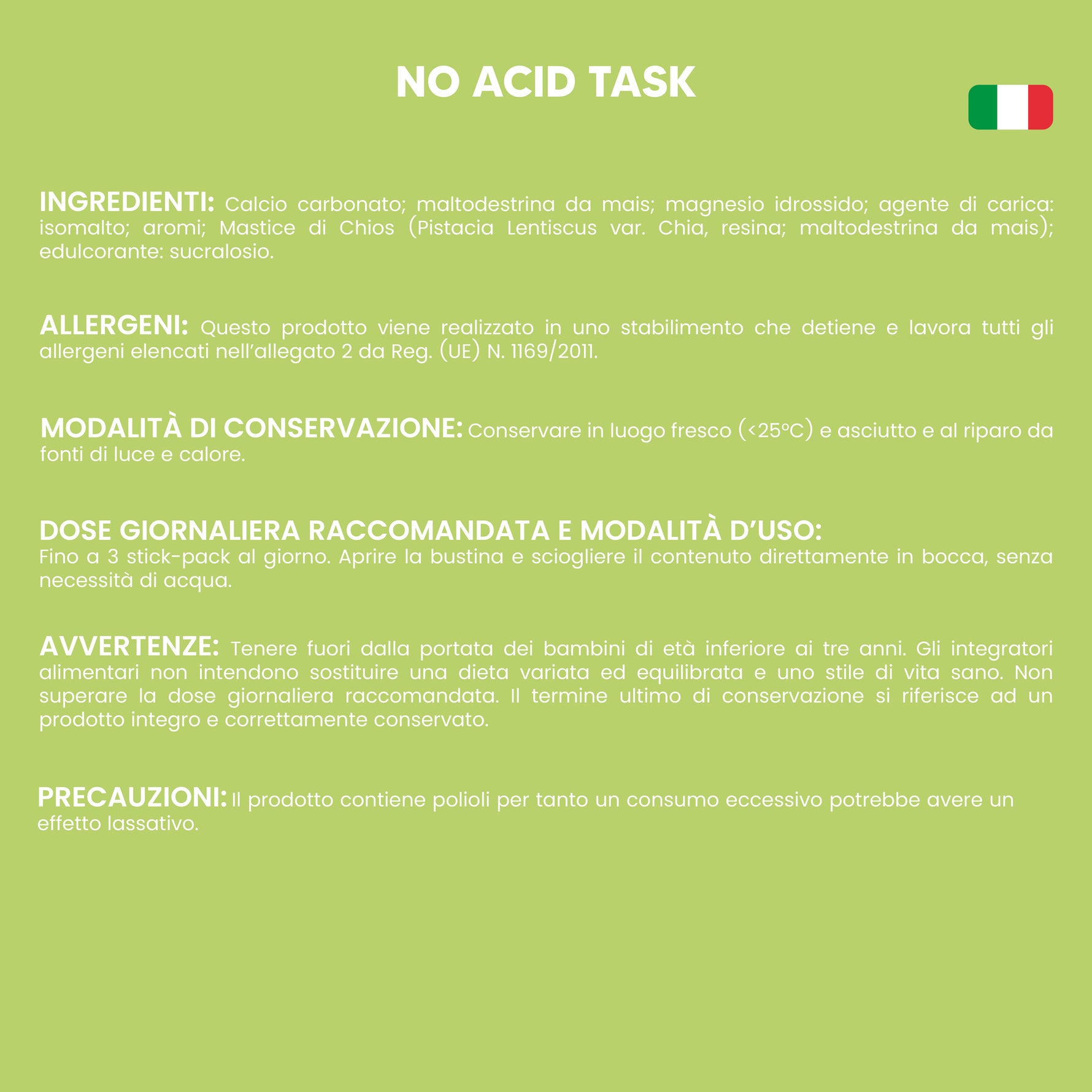 1x No Acid Task – bustine orosolubili a base di Magnesio idrossido, Calcio carbonato e Mastice di Chios, utile per favorire la funzione digestiva, ideale per iperacidità, bruciore di stomaco e cattiva digestione
