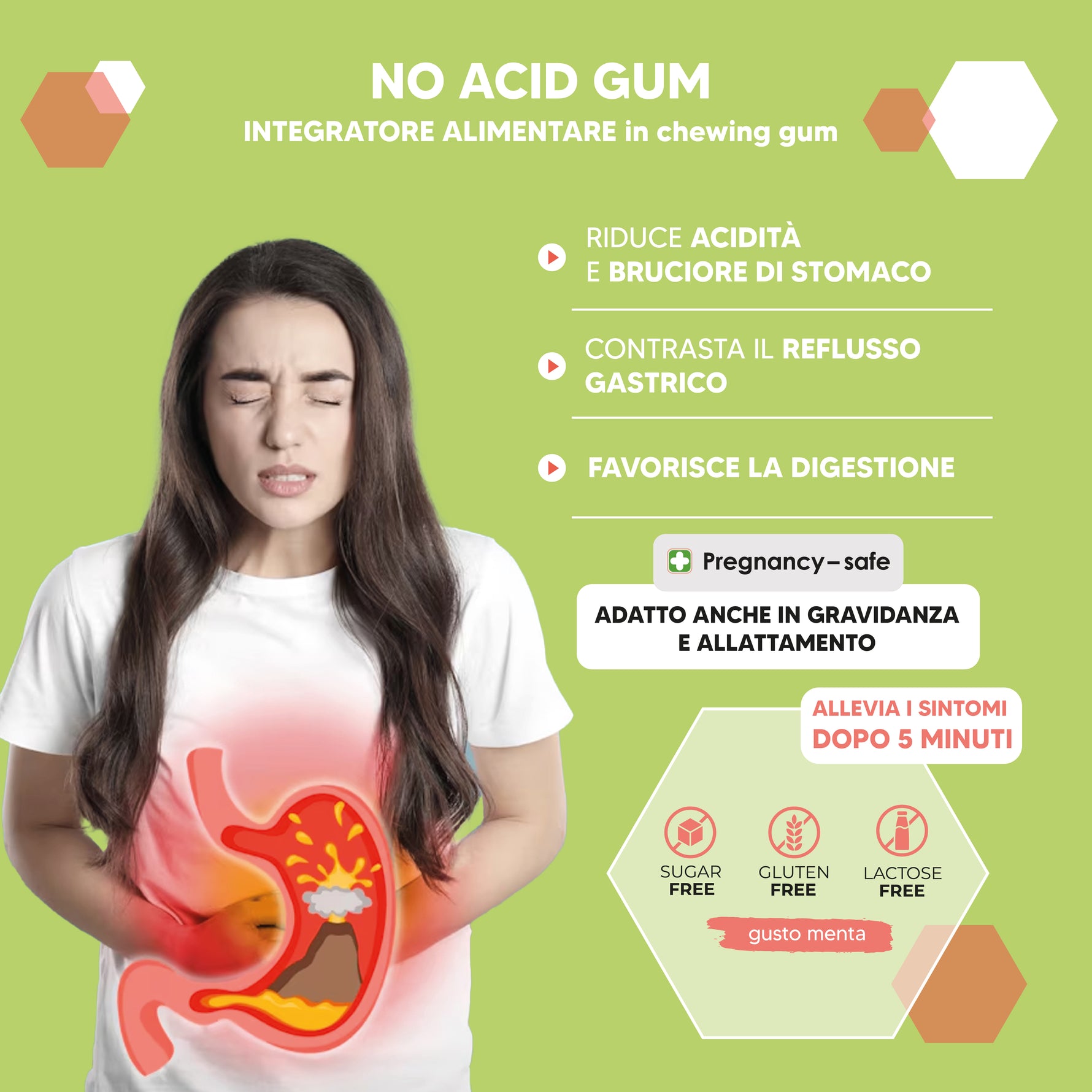 1x No Acid Gum (30 chewing gum): chewing gum funzionale da portare sempre con te per acidità di stomaco, reflusso e bruciore