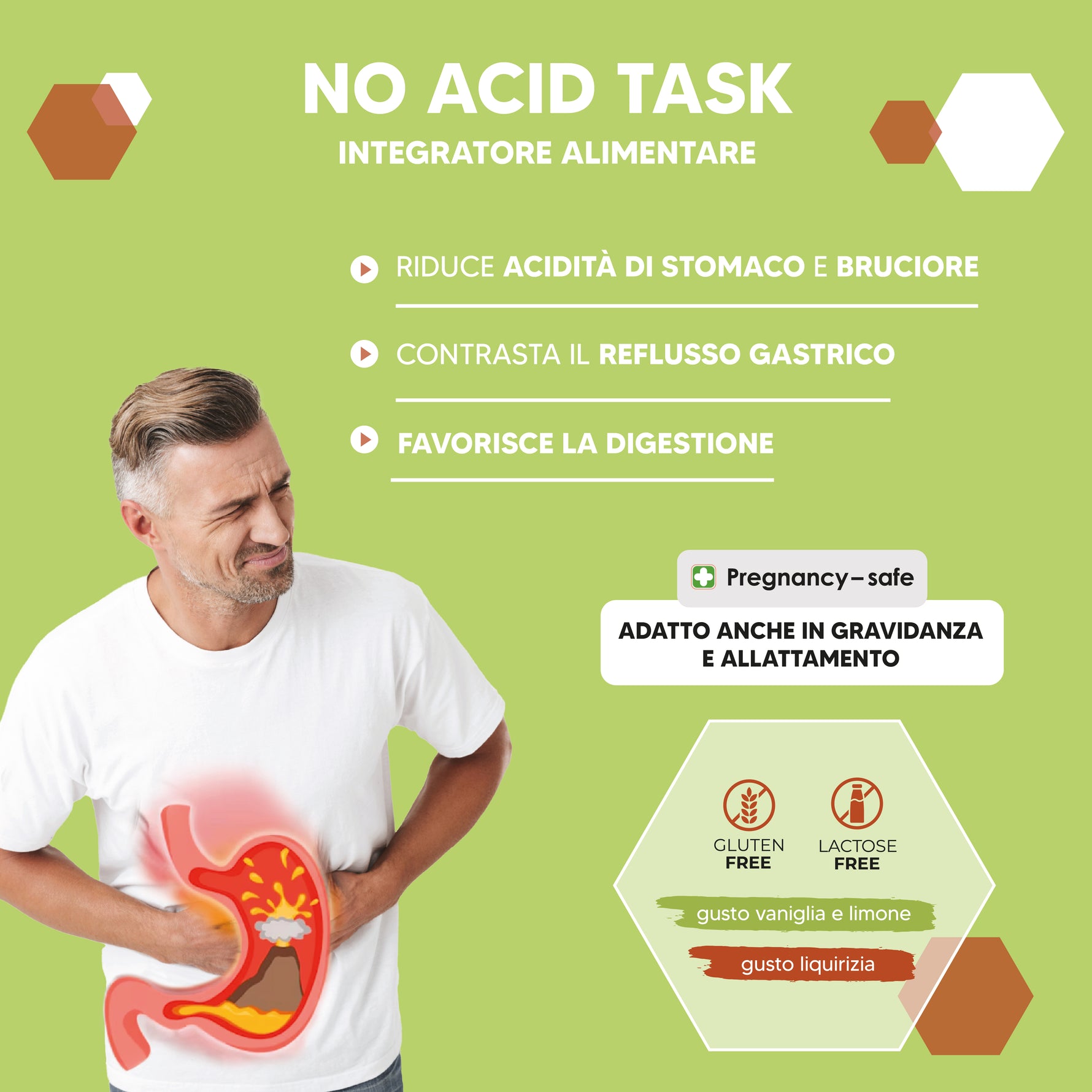 1x No Acid Task: bustine orosolubili per iperacidità di stomaco, reflusso e cattiva digestione